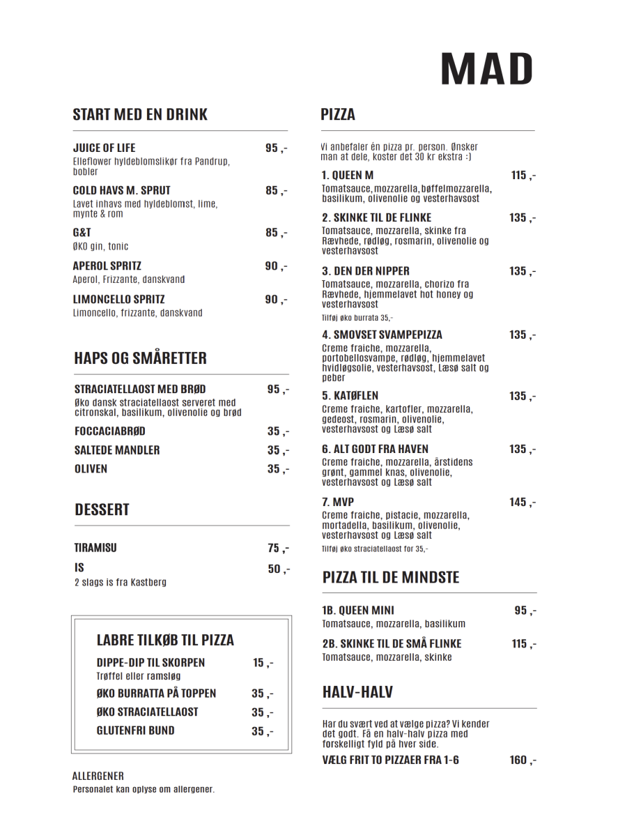 Hvis du har brug for oplysninger om allergener, kan du kontakte os på 61 10 14 18